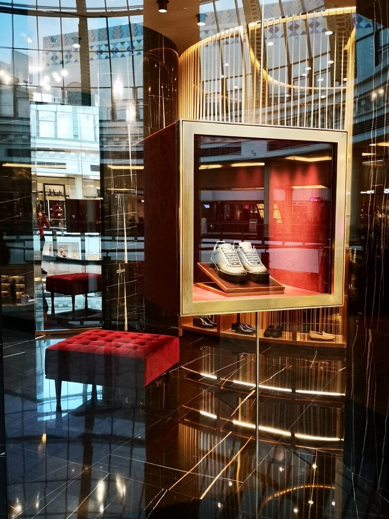 THE DUBAI MALL Während meines 14tägigen Dubai-Urlaubs verbrachte ich tatsächlich nicht wenige Stunden in der 350.000 Quadratmeter großen und mit üppigen 1.200 Geschäften reich bestückten Luxus-Shopping-Mall. Und allen Kulturpessimisten und Gesellschaftskritikern zum Trotz: Ich war schwer beeindruckt. Ja manch raffiniert arrangiertes Produkt gewann dadurch geradezu eine Ästhetik, die nach meinem Empfinden gar nicht mehr fern von Kunst war.
